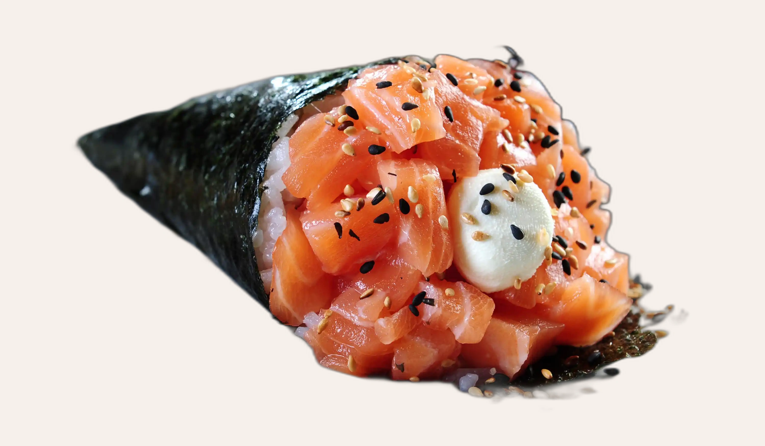 Lớp rong biển trong Temaki kết hợp hoàn hảo với Sauvignon Blanc hoặc Vinho Verde, mang lại sự hòa quyện tươi mới.
