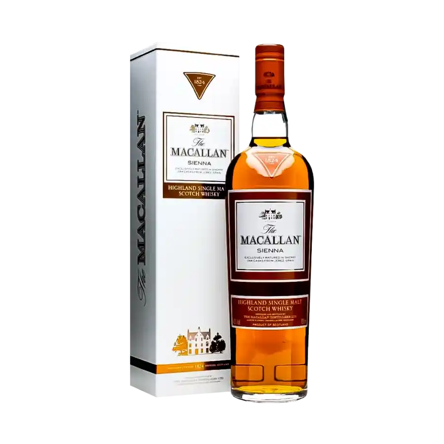 Whisky Macallan Sienna là một trong những dòng cao cấp thuộc "The 1824 Series", Rượu nổi bật với sự cân bằng tuyệt vời. Whisky được chọn lọc từ các thùng ủ đặc biệt, tạo ra màu sắc tự nhiên và hương vị tinh tế.