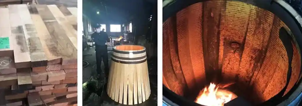 Các thợ làm thùng phải chờ nhiều năm để các thanh gỗ sồi Mizunara khô trước khi chế tạo thùng. Sồi Mizunara rất xốp, cần chẻ thành khúc và chia theo các mạch gỗ để đảm bảo thùng không bị rò rỉ.