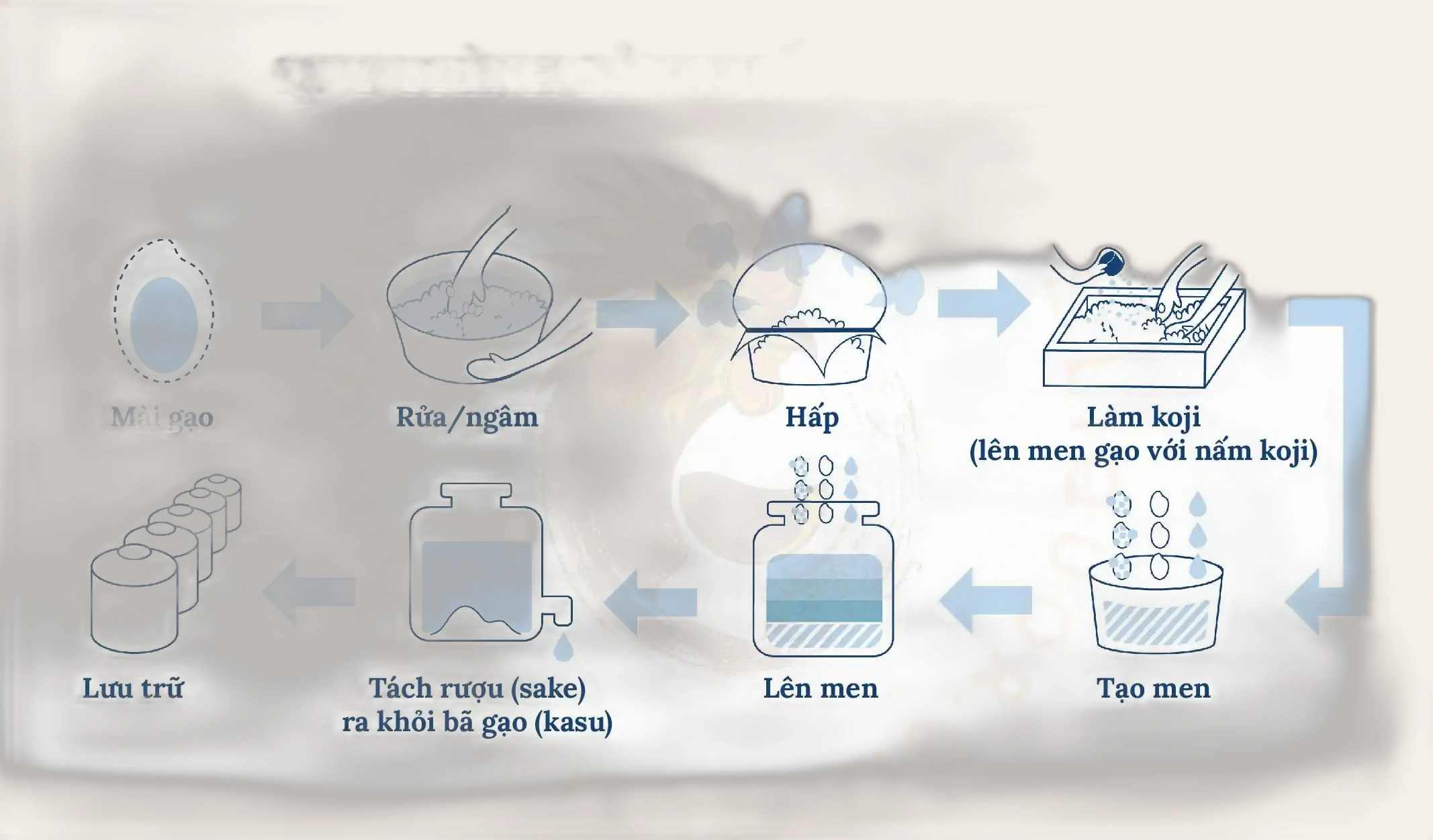 Rượu sake được tạo ra thông qua một quá trình phức tạp gọi là lên men kép song song. Gạo được chuyển hóa thành đường bởi koji, sau đó thêm men vào gạo đã đường hóa để lên men.
