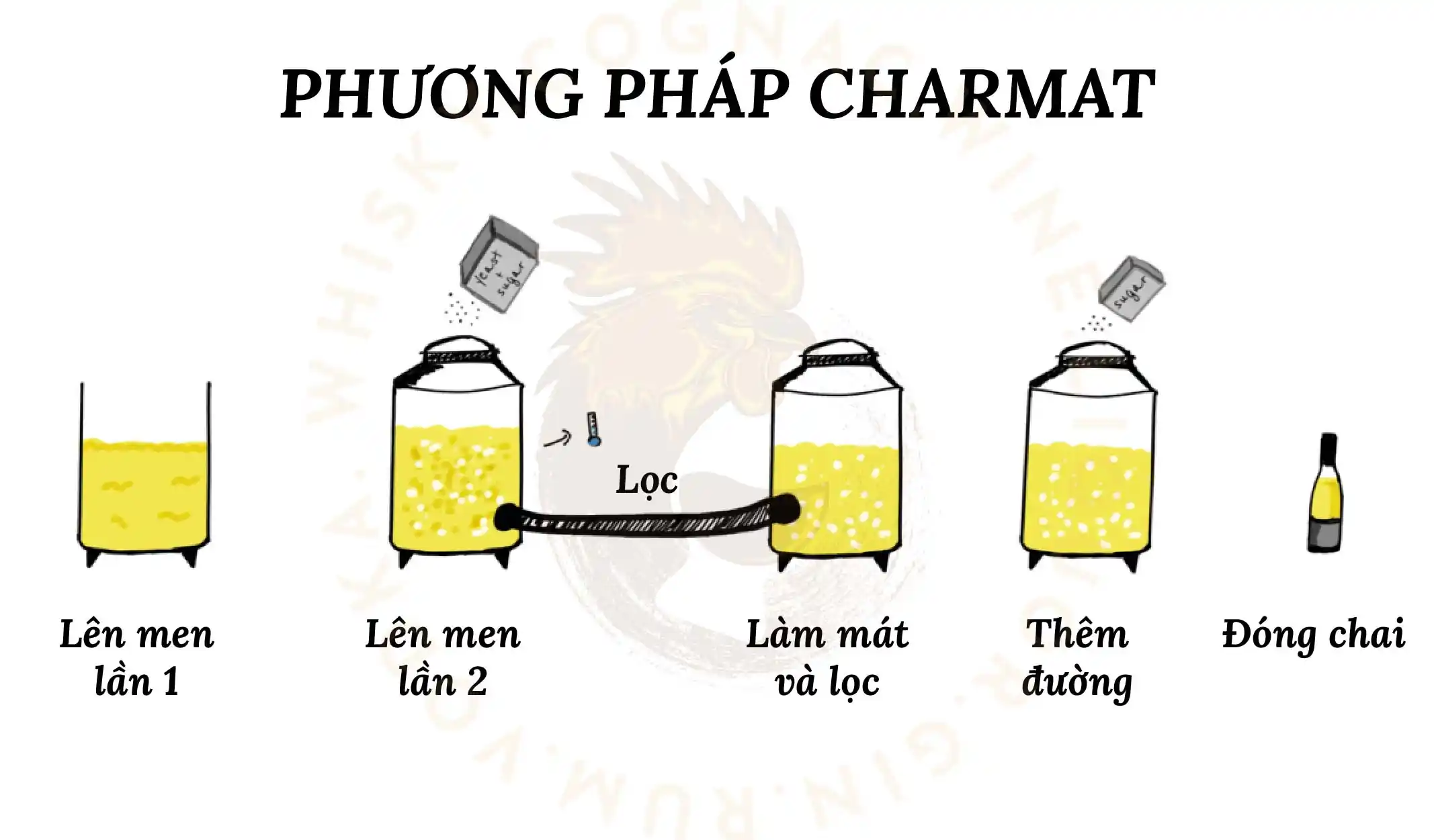 Dưới đây là các bước của quy trình Charmat:
