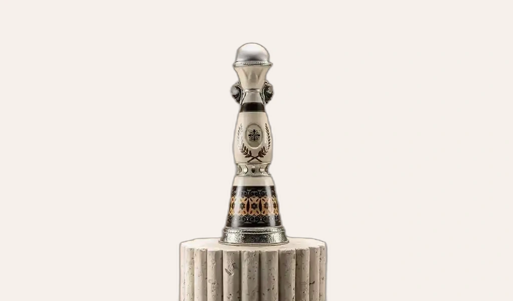 Thiết kế chai được trang trí bằng hai tay cầm bằng bạc niken duyên dáng trên cổ, làm nổi bật hình dáng mang tính biểu tượng, biểu tượng Clase Azul México được bao quanh bởi một vòng nguyệt quế và một chiếc thắt lưng in hoa đậm quấn quanh bề mặt phía trên đế kim loại.