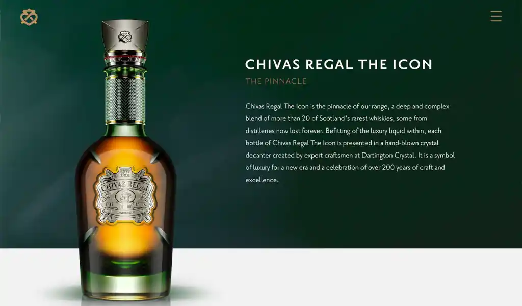Sau hơn 1 thế kỷ hình thành và phát triển, Chivas Regal đã khẳng định mình là dòng whisky cao cấp đầu tiên trên thế giới thông qua phiên bản 25 tuổi huyền thoại. Và giờ đây, Chivas Regal giới thiệu một biểu tượng cao cấp mới cho một kỷ nguyên mới – Rượu Whisky Chivas The Icon.