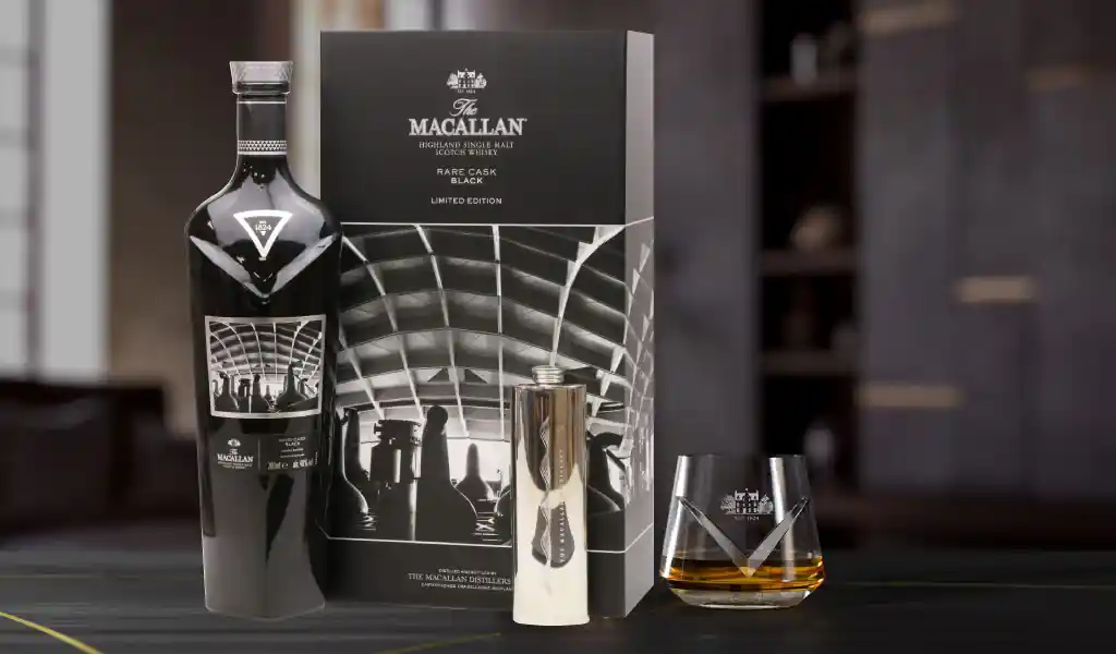 Macallan Rare Cask Black Limited Edition là một phần của dòng Macallan 1824 Masters Series và được khắc hoạ bằng những bức ảnh tuyệt đẹp của Paolo Pellegrin trên nhãn sản phẩm đặc biệt này và một bình rượu nhỏ (Flask) đặt làm riêng từ Trung tâm Du khách Nhà máy rượu (Distillery Visitor Centre). Macallan Rare Cask Black Limited Edition được phát hành giới hạn gồm 7000 bộ, chỉ có sẵn tại các sân bay quốc tế lớn.